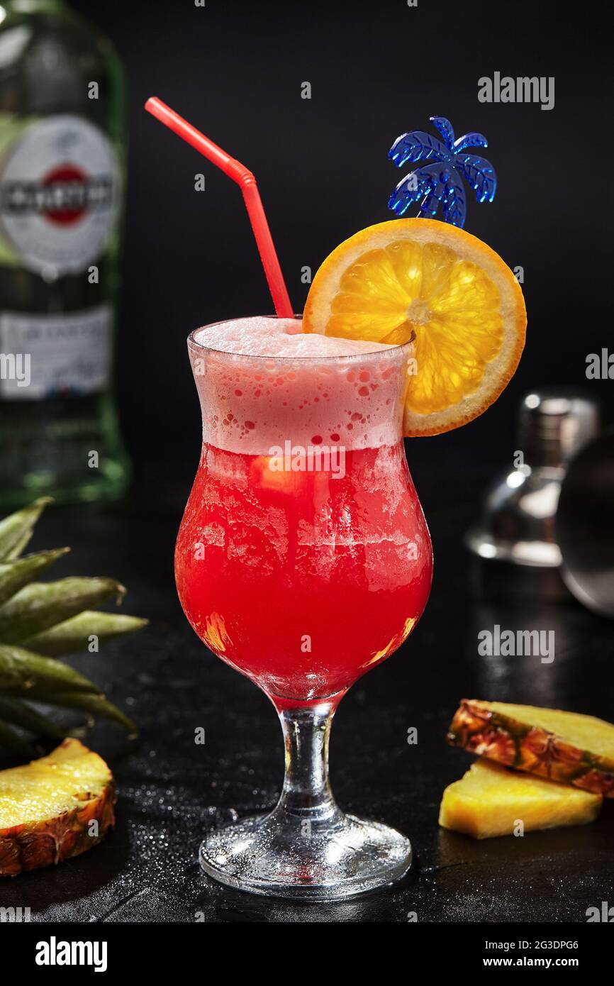 Cocktail Pink Panther With Vodka Pineapple Juice Grenadine Martini Stock Photo Alamy